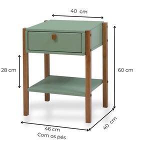 O acabamento de alto padrão realça os veios da madeira, conferindo um toque de elegância e sofisticação. A gaveta equipada com corrediças telescópicas oferece abertura suave e silenciosa, enquanto a prateleira inferior, que serve como nicho, é perfeita para organizar seus livros ou objetos decorativos.