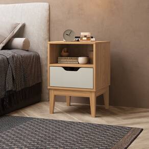 Características: 1 Gaveta 1 Nicho Corrediças telescópicas Estrutura em MDP 15mm Pés em madeira Maciça