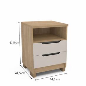 A Mesa de Cabeceira Barcelona 2 Gavetas, na elegante combinação Off White com Carvalho, é perfeita para complementar o quarto com funcionalidade e design moderno. Fabricada em 100% MDF, oferece maior resistência, excelente acabamento e durabilidade no uso diário. Com 44,5 cm de largura, 61,5 cm de altura e 44,5 cm de profundidade, possui dimensões ideais para otimizar o espaço ao lado da cama. Suas gavetas com corrediças telescópicas de extração total garantem abertura suave, acesso completo e mais praticidade na organização. O acabamento em pintura UV proporciona cor uniforme, maior resistência a riscos e um toque sofisticado, tornando a Mesa de Cabeceira Barcelona uma escolha funcional, elegante e durável para o ambiente. Acabamento da Gaveta: Pintura UV Altura dos Pés: 7 cm Ambiente Principal: Quarto codigo_ean: 7900288318381 Complexidade da Montagem: Baixa: pode ser montado por uma pessoa sozinha Cor: Off White/Carvalho Cor do Produto: Off White/Carvalho Cor Interna: Carvalho Escala de Brilho: Semi-Brilho Escala de Brilho da Gaveta: Semi-Brilho Gaveta com Chave: Não Itens Inclusos: 1 Mesa de Cabeceira, Kit de Ferragens, Manual de Montagem e Termo de Garantia Linha ou Coleção: Barcelona Manual de Montagem e Instalação: https://product-hub-prd.madeiramadeira.com.br/555380190/documents/618b1cd5-19bd-4824-a43a-b68a3b08e17b33679186224176945704221.pdf Marca: Politorno Material da Gaveta: MDF Material dos Pés: Plástico Material Principal: MDF Necessita Montagem: Sim Origem do Produto: Nacional Peso: 21,33 kg Peso Máximo por Gaveta: 5 kg Pet Friendly: Não Possui Espelho: Não Possui Possui Nichos: 01 Possui Pés: 04 Possui Portas: Não Possui Prateleiras: Não Quantidade de Nichos: 01 Quantidade do Produto: 1 Recomendações de Uso, Manutenção e Limpeza: Utilize um pano macio umedecido com água e sabão neutro, seguido de pano seco. Não utilize produtos químicos ou abrasivos para limpeza, pois estes danificam o revestimento do móvel. Sapatas Niveladoras: Sim Sistema de Montagem: Cavilha, Parafuso, Minifix e prego. Suporta Até (kg): 15 kg Tipo de Corrediça da Gaveta: Metálica Telescópica Tipo de Puxador da Gaveta: Embutido Marca: Não Informado