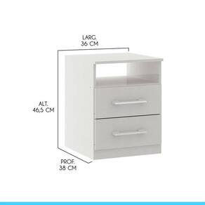 Mesa De Cabeceira 2 Gavetas 36x46cm Mdp Branco Menu Móveis Branco A Mesa de Cabeceira e um movel util e versatil que facilita a sua rotina diaria. Dispoe de um design atual que facilita na hora de montar a decoracao do seu ambiente. Dispoe de duas gavetas, nicho e tampo espacoso para manter tudo sempre organizado. A Mesa de Cabeceira e produzida com materiais de excelente qualidade, garantindo a durabilidade e vida util dos moveis. O melhor em moveis no design atual aliando conforto, qualidade e otimos precos, so na Menu Moveis! Caracteristicas: Referencia: 1040 Material: MDP de 12 mm Acabamento: Pintura UV na cor Branco Gavetas: 02 Gavetas com Corredicas Metalicas Puxador tipo Alca em ABS na cor Prata