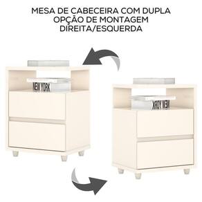 Mesa De Cabeceira 2 Gavetas 48 Cm Campeche Off White Henn Off White Versatilidade, funcionalidade e design moderno definem a Mesa de Cabeceira 48 cm. Com sua estrutura em MDP de 15 mm e acabamento em pintura UV fosco, o móvel conta com 2 gavetas com corrediças metálicas, pés em plástico ABS e um nicho superior aberto. Seu diferencial é a montagem , permitindo que o nicho fique tanto do lado direito quanto o esquerdo. Ideal para compor dormitórios adaptando-se a diferentes estilos de decoração. Este móvel chegará na sua casa separado em 01 volume. Dimensões Totais: Altura: 64,5 cm Largura: 48,5 cm Profundidade: 39 cm