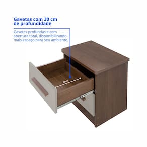 A mesa de cabeceira Zeus é moderno e pensado para garantir sofisticação ao ambiente. Produzido com tampo, fundo e frente de gavetas em MDF, possui 02 gavetas com corrediças telescópica e acabamento resistente com pintura UV. Ideal para ornar com a decoração do seu quarto. Possui quinas arredondadas. Atenção:A coloração das imagens do produto pode ter diferentes tonalidades dependendo do seu monitor.Ao receber o produto verifique as seguintes informações:Confira a quantidade de caixas e volumes;Consulte se o nome do comprador consta em todas as etiquetas;Verifique se as caixas não apresentam sinais de danos ou violação;Sempre confira seu produto no ato da entrega.NÃO nos responsabilizamos pela montagem do produto. Acabamento da Gaveta: Pintura UV Ambiente Principal: Quarto codigo_ean: 7900288216946 Complexidade da Montagem: Média: pode ser montado por mais de uma pessoa e/ou necessite de maior conhecimento para montagem Cor: Castanho /Off White Cor do Produto: Castanho /Off White Cor Flex: Não Cor Interna: Castanho Escala de Brilho: Semi-Brilho Escala de Brilho da Gaveta: Semi-Brilho Gaveta com Chave: Não Informações Complementares: O peso suportado, conta com os itens dentro da gaveta e sobre o móvel. Nosso off white tem fundo acizentado e possui brilho Itens Inclusos: 1 Mesa de Cabeceira, Kit Ferragem e Manual de Montagem Linha ou Coleção: Zeus Manual de Montagem e Instalação: https://product-hub-prd.madeiramadeira.com.br/339415914/documents/0f8ade64-1c57-4229-8588-5710a0a455403145142541117555376122262.pdf Marca: D Doro Material da Gaveta: MDF/MDP Material do Puxador da Gaveta: Madeira Maciça Material Principal: MDF/MDP Necessita Montagem: Sim Origem do Produto: Nacional Peso: 14 kg Peso Máximo por Gaveta: 7 kg Pet Friendly: Não Possui Espelho: Não Possui Possui Nichos: Não Possui Pés: Não Possui Portas: Não Possui Prateleiras: Não Possui Vidro: Não Recomendações de Uso, Manutenção e Limpeza: Pano levemente umedecido e pano seco. Não utilizar produtos de limpeza e abrasivos Sapatas Niveladoras: Não Sistema de Montagem: parafusos e cavilha Suporta Até (kg): 30 kg Tipo de Corrediça da Gaveta: Metálica Telescópica Tipo de Puxador da Gaveta: Externo