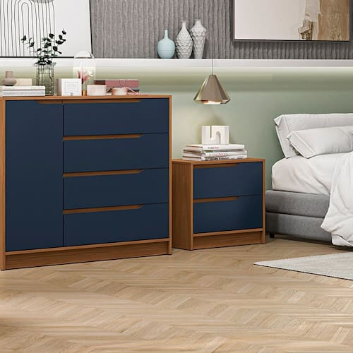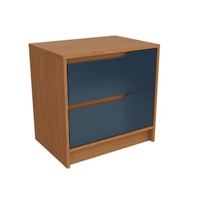 Mesa de Cabeceira 2 Gavetas de Madeira Canela/Azul - Azul Doce