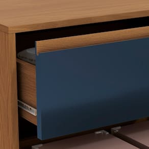 Seu quarto mais lindo, moderno e organizado com a Mesa de Cabeceira R261 da Kappesberg. Com 53cm de altura, 53,5cm de largura e 38,5cm de profundidade, ela é produzida 100% em MDF de 15mm, o que proporciona mais robustez, firmeza e qualidade. E com sete camadas de pintura, a caixaria é na cor canela, com cabamento touch, e as gavetas na cor azul profundo, em acabamento fosco. Uma combinação linda e moderna, garantindo elegância ao ambiente, e os puxadores cava completam o estilo e qualidade do produto. Para mais organização, as gavetas possuem corrediças telescópicas, permitindo a abertura total e um melhor aproveitamento de espaço para acessórios e peças menores. Além disso, ao ser colocada ao lado da cama, ela serve de apoio para livros e luminárias, tornando seu quarto completo.