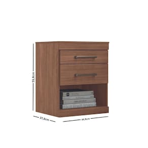 Características: 02 gavetas com corrediças metálicas Espaço para livros e revistas Puxadores em alumínio