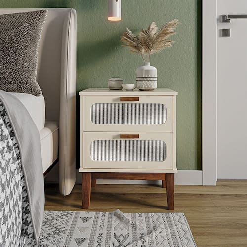 Mesa de Cabeceira 2 Gavetas Santorini Off White 45 Cm com Tela Indiana