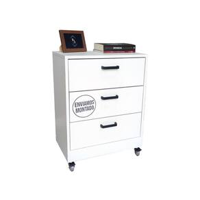 Mesa de Cabeceira Branca 50cm com 3 Gavetas - Enviada Montada