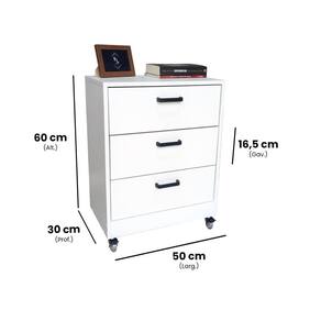 Altura: 60 cm Largura: 50 cm Profundidade: 30 cm Material: MDF 15mm de alta qualidade Gavetas: Corrediças telescópicas para mais suavidade e funcionalidade