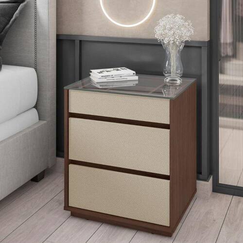 Mesa de Cabeceira 3 Gavetas Belize Casa D - Bege Médio