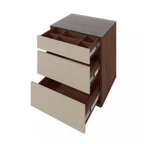 A Mesa de Cabeceira Belize é ideal para o seu quarto! Ela possui 3 gavetas sendo que a superior possui um organizador interno. As gavetas possuem corrediças telescópicas. Tampo feito de vidro, base e laterais feitos em MDP. Sua pintura conta com acabamento Print Wood.