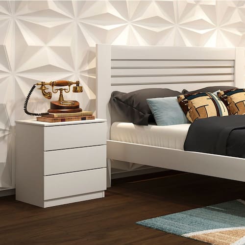 Mesa de cabeceira 3 gavetas corrediças telescópicas - Veronna-Neve - Tcil Móveis A mesa de cabeceira é aquele móvel que nunca pode faltar no nosso quarto, com várias utilidades como decoração e guarda objetos. Este produto irá te encantar, fabricada em MDF e suas 3 gavetas possuem corrediças telescópicas que traz uma maior sofisticação para a mesa de cabeceira e também proporciona um mecanismo silencioso para abrir e fechar as gavetas. Garanta já a sua!Faz parte deste anúncio:1 Mesa de cabeceira 3 gavetas corrediças telescópicas - VeronnaObs: Objetos de decorações não incluso.Particularidades da Mesa de Cabeceira Características;- Produto fabricado em MDF;- Gavetas com corrediças telescópicas; - 3 gavetas;Dimensões:Altura: 58 CentímetrosLargura: 45 Centímetros Profundidade: 45 CentímetrosInformações Importantes:.-O envio desse produto é feito através de transportadora.-Produtos podem apresentar diferenças de tonalidades entre a foto na tela e o produto real, devido a calibração de cor de tela. -Limpar com flanela ou pano macio. Não utilizar álcool. Não utilizar produtos abrasivos ou corrosivos.-Nós prezamos pela qualidade da entrega em primeiro lugar, trabalhamos com transportadoras altamente selecionadas e os melhores materiais de embalagem.-A montagem é de total reponsabilidade do comprador. Antes de comprar, verifique o espaço disponível para a montagem.-Certifique-se de que o produto caiba em elevadores e vãos de escadas, não fazemos içamentos. Quaisquer despesas deste tipo ficam a cargo do cliente-Garantia de 3 meses contra defeitos de fabricação.