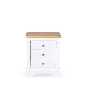 A Mesa de Cabeceira Louise com 3 Gavetas une elegância e praticidade em um design clássico com acabamento branco, que traz leveza e sofisticação ao ambiente. As gavetas amplas com puxadores metálicos são perfeitas para organizar objetos pessoais, enquanto o tampo em madeira maciça de pinus exibe sutis variações e desenhos naturais que realçam a beleza da peça.