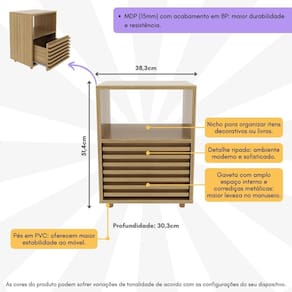 Imagine um móvel que combina elegância e funcionalidade para elevar o estilo do seu quarto: é a Mesa de Cabeceira 38,3cm com 1 Gaveta Ripada Multimóveis CR35246. Produzida em MDP de 15mm com acabamento em BP, garante durabilidade e resistência incomparáveis.Com 1 gaveta funda que suporta até 3kg e detalhe ripado, esta mesa confere amplo espaço interno e um toque de sofisticação. As corrediças metálicas proporcionam um manuseio suave e leve, enquanto o nicho prático acomoda até 5kg, mantendo seus itens e livros favoritos sempre à mão. O tampo suporta até 12kg, perfeito para acomodar seus objetos de decoração ou abajur, e os pés em PVC oferecem maior estabilidade ao móvel.