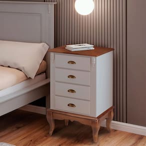 Apresentamos a solução perfeita para transformar o seu quarto em um ambiente de encanto e organização! A Mesa de Cabeceira em Madeira Hannover Linz Móveis é a resposta para o que você necessita. Com suas quatro gavetas espaçosas, ela oferece uma forma inteligente e elegante de guardar seus itens essenciais, mantendo tudo ao alcance das mãos. Produzida totalmente em madeira maciça, essa mesa de cabeceira retrô é sinônimo de qualidade e durabilidade, garantindo que você possa desfrutar dela por muitos anos sem preocupações. O acabamento em verniz realça a beleza natural da madeira, trazendo um brilho sofisticado para a peça e enriquecendo a decoração do seu quarto. Além disso, os pés no estilo Luis XV acrescentam um toque de elegância e charme, tornando essa mesa de cabeceira para quarto um destaque na decoração do seu espaço de descanso, se tornando uma peça de decoração sofisticada e atemporal.