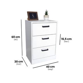 Altura: 60 cm Largura: 40 cm Profundidade: 30 cm Material: MDF de alta qualidade 15mm Gavetas: Corrediças telescópicas para mais durabilidade e funcionalidade