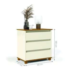 Um móvel versátil e funcional, sem puxadores externos e três gavetas com corrediças telescópicas, trazendo um excelente espaço interno que é ideal para acomodar roupas e objetos.
