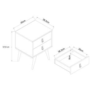 Destaques: Mesa Cabeceira com 2 Gavetas Corrediças Metálicas para fácil abertura Pés de Madeira Maciça para durabilidade Puxadores de Couro Sintético para um toque moderno Frentes em Melamina BP para resistência