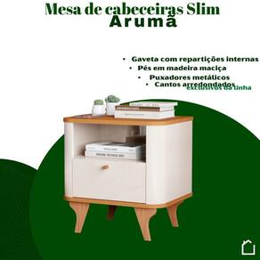 Mesa De Cabeceira Aruma Slim Com Cantos Arredondados Off White Com Nature Com design moderno e funcional, a Mesa de Cabeceira Slim Arumã é ideal para quem busca elegância e praticidade em espaços cantos arredondados exclusivos da linha Arumã trazem um toque de sofisticação e . O puxador metálico com acabamento refinado e os pés em madeira maciça garantem charme, firmeza e porta com divisória interna oferece praticidade e um excelente aproveitamento do espaço, mantendo seus objetos pessoais sempre à mão e bem organizados, sem comprometer o visual leve do ões:Altura: 50,0 cmLargura: 45,0 cmProfundidade: 33,5 cmObservações:- Cantos arredondados exclusivos da linha Arumã- Puxador metálico com acabamento refinado- Pés em madeira maciça, oferecendo firmeza e durabilidade- Porta com divisão interna para melhor aproveitamento- Visual clean que valoriza o ambiente Marca: Não Informado