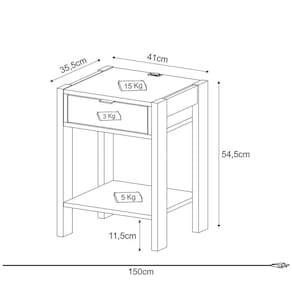 Peso Máximo Suportado: 3Kg Gaveta e 15kg Tampo.