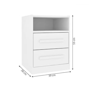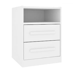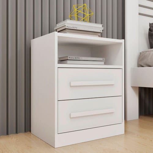 O(a) Mesa de Cabeceira Barcelona 2 Gavetas Neve - Tcil Móveis é produzido em MDF e MDP na escala de brilho Fosco e Semi-Brilho, e possui um grau de dificuldade de montagem: Médio.