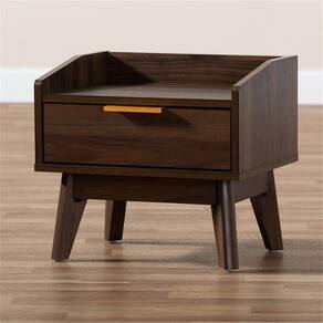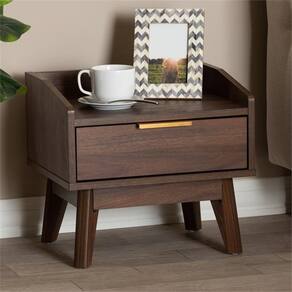- Mesa de cabeceira moderna de madeira de uma gaveta de meados do século da coleção Lena da Baxton Studio.
