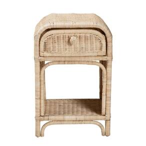 Uma atmosfera de tranquilidade rústica chega ao seu quarto com a charmosa mesa de cabeceira Magni. Feita à mão na Indonésia, esta peça boêmia é composta inteiramente de rattan natural. Seu design arredondado é equipado com uma gaveta para organizar os itens essenciais de cabeceira, enquanto a prateleira aberta acomoda itens maiores. O Magni chegará totalmente montado e possui uma maçaneta de gaveta tecida que complementa a qualidade exótica da peça. Uma exibição de arte robusta, a mesa de cabeceira Magni carrega uma aura serena em qualquer arranjo. Devido à natureza dos materiais naturais utilizados neste produto, ele pode ter variações em áreas como, mas não se limitando a, cor, padrão, grão e textura. Os fios de fibra de rattan/rattan são comuns devido à natureza do material. Características: - Mesa de cabeceira boêmia - Construída em rattan natural. - Uma (1) gaveta - Uma (1) prateleira - Acabamento em tecido de vime natural - Maçaneta de gaveta redonda - Totalmente montada. Especificações: - Dimensões do produto: Geral: 18,10" L x 15,50" P x 27,10" A; Espaço inferior aberto na prateleira: 16,90" L x 14,90" P x 13,30" A; Gaveta: 15,30" L x 14,90" P x 6,30" H; Folga (chão para cima): 3,30" L x 14,90" D. 94 polegadas de altura.