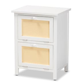 Com uma linda tela inspirada no design retrô, a mesa de cabeceira Sariah enriquece o quarto moderno. Possui mesa de cabeceira moderna de meados do século Construída em madeira de paulownia e madeira compensada Detalhes em rattan sintético Duas (2) prateleiras atrás das portas Maçanetas redondas Material: madeira de paulownia, rattan sintético Cor: bege, branco Dimensões gerais: 21,30 “de altura x 15,70" de largura x 11,80" de profundidade Armazenamento atrás Dimensões da porta: 12,20" de largura x 10,40" de profundidade x 8,00" de altura Pernas: 2,40" de altura Montagem necessária: não fabricada na China - embeleze o layout do seu quarto com o design marcante do Mesa de cabeceira Sariah. Feita na China, esta peça prática é composta por uma estrutura de madeira resistente adornada com detalhes em rattan. As portas se abrem para revelar duas prateleiras espaçosas para organizar todos os itens essenciais de cabeceira e reservar a mesa para uso noturno. Vem totalmente montado, o Sariah possui maçanetas redondas para um toque limpo e contemporâneo.