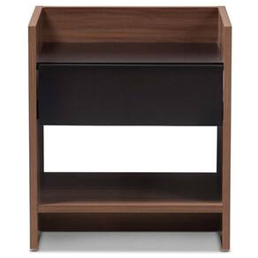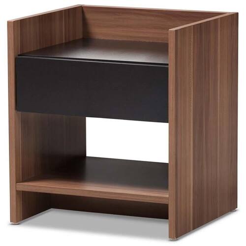 - Personalize seu quarto colocando os itens essenciais do seu quarto na adorável e prática mesa de cabeceira Vanda com 1 gaveta, disponível em acabamento de dois tons em nogueira e preto. Construído com base de placa de madeira projetada de alta densidade para uma qualidade resistente e durável com um acabamento de melamina para um estilo suave e resiliente, a Vanda possui melamina resistente a arranhões, resistente a manchas e à prova d'água para durabilidade excepcional