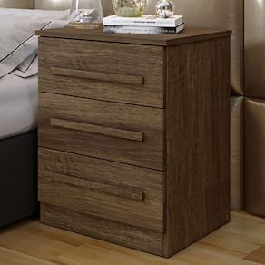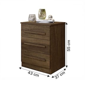 O(a) Mesa de Cabeceira Belize com 3 Gavetas Imbuia - Loja é produzido em MDP na escala de brilho Fosco, e possui um grau de dificuldade de montagem: Médio.