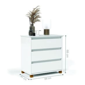 Um móvel versátil e funcional, sem puxadores externos e três gavetas com corrediças telescópicas, trazendo um excelente espaço interno que é ideal para acomodar roupas e objetos.