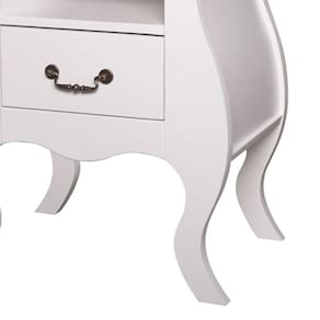 A Mesa de Cabeceira Bombê com Nicho Linz Móveis é ideal para ficar ao lado da cama ou da sua poltrona, e vai deixar seu ambiente mais lindo e completo. Ela é ótima para quem deseja deixar a decoração do quarto diferenciada, com estilo clássico com pés curvados, proporciona um charme europeu e se encaixa perfeitamente em qualquer lugar. Sua gaveta é ótima para guardar seus objetos, possui corrediças telescópicas qual deixa a abertura mais suave, puxadores detalhados que dão um toque especial no produto e ela ainda conta com um nicho, ideal para guardar aquele seu livro de cabeceira preferido ou objetos que deseje que fique ao fácil alcance.
