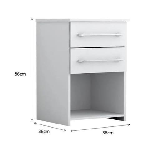 MESA DE CABECEIRA BRUNA | Com 2 gavetas em corrediças metálicas e espaço para livros a mesa de cabeceira Bruna vai deixar o seu quarto mais organizado. Possui um design moderno e puxadores cromados. Além disso, o produto possui uma fácil montagem. A mesa possui montagem flex com as gavetas podendo ser montadas tanto para cima como para baixo.