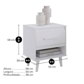 Produzida em MDP de alta qualidade e com acabamento em pintura UV, esta mesa de cabeceira oferece resistência, durabilidade e fácil limpeza, sendo ideal para o uso diário. Seu design retrô com pés fixos traz um toque sofisticado e atemporal ao ambiente.
