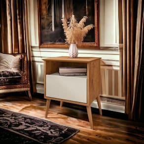 Revele a elegância em cada detalhe com essa mesa de cabeceira! Seu design contemporâneo e funcionalidade inteligente tornam-na a companheira perfeita para suas noites.