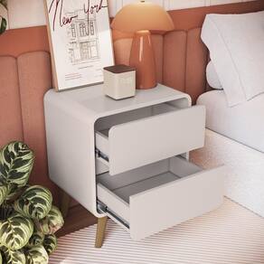 A Mesa de Cabeceira Canto Curvo com 02 Gavetas e Pés Palito Retrô da Completa Móveis apresenta funcionalidade, praticidade e elegância com design arrojado e atemporal! Com cantos arredondados, traz uma leveza ao ambiente.