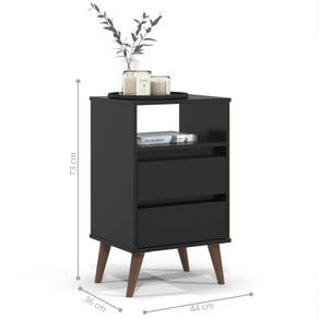 Transforme seu quarto com a charmosa Mesa de Cabeceira! Este móvel é a combinação perfeita de estilo retrô e praticidade moderna. Dimensões do produto montado: Altura: 73 cm Largura: 44 cm Profundidade: 36 cm Características: - Material MDP - Cor preto - Gaveta - Nicho - Pés Itens Incluso: 01 Mesa de cabeceira. Kit completo para montagem. Manual de montagem. Observações: - Não nos responsabilizamos pela montagem do produto. - Sistema de Montagem: Parafusos, Cavilhas e Tampos. - É recomendado que a montagem seja feita por um profissional qualificado. - As imagens indicam uma sugestão de uso e são apenas ilustrativas, os objetos decorativos não estão inclusos. - Ao iniciar a montagem, forre o chão com o papelão das embalagens para proteger as peças de arranhões. Instruções e Cuidados: Limpar com pano seco, manter em lugar livre de umidade, ao abrigo de exposição direta ao sol.