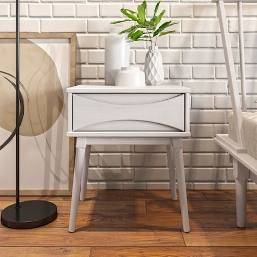 A Mesa de Cabeceira Nordik combina design escandinavo e praticidade em uma peça que valoriza seu quarto. Com estrutura em madeira maciça de pinus, traz linhas harmônicas e pés torneados que criam um visual leve e sofisticado. A gaveta com puxador embutido oferece espaço para organizar objetos pessoais com elegância e funcionalidade. Ideal para compor ambientes contemporâneos e acolhedores.