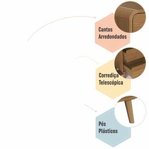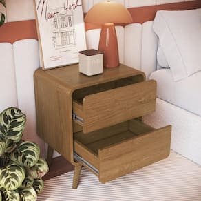 A Mesa de Cabeceira Linha Curve da Completa Móveis une design sofisticado e funcionalidade para compor ambientes aconchegantes e modernos. Com acabamento fosco na elegante cor Carvalho Xingu, ela traz um toque contemporâneo ao seu quarto. Seu design com cantos arredondados e molduras laterais em MDF proporciona uma estética suave e diferenciada, além de mais segurança. O modelo conta com 2 gavetas equipadas com corrediças telescópicas metálicas, garantindo abertura total e suave, além de puxadores embutidos que reforçam o visual clean. Os pés plásticos de 16 cm facilitam a limpeza e elevam o móvel com leveza.
