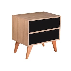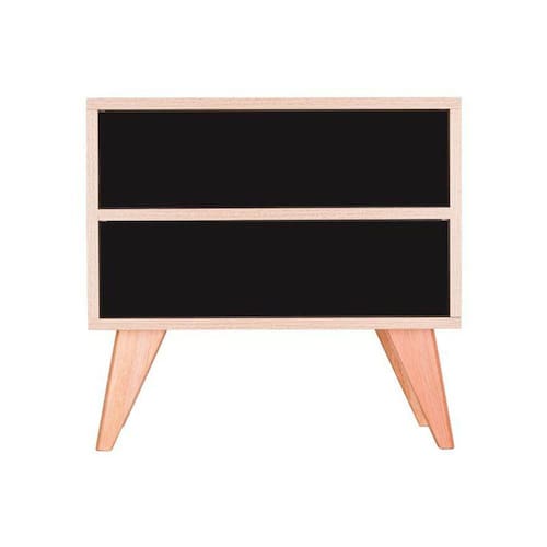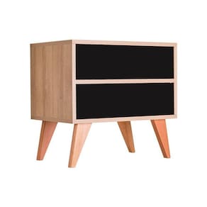 Mesa de Cabeceira Modelo Bréscia na cor Carvalho Treviso (Madeira Clara) e portas Pretas traz organização com estilo para o seu quarto. Possui lindos pés torneados em diagonal.