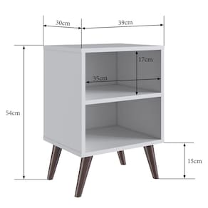 A Mesa de Cabeceira com Prateleira Branca possui uma prateleira espaçosa, ideal para organizar seus objetos pessoais, livros ou até mesmo decorar com itens que reflitam sua personalidade. A prateleira suporta até 3 kg, garantindo durabilidade e resistência.