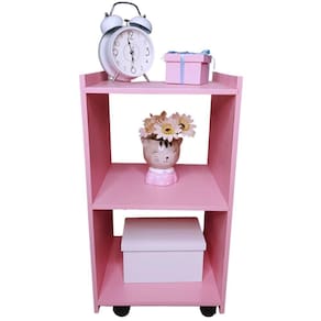 Mesa de Cabeceira com Rodinhas Giratórias 100% MDF Rosa -