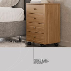 O gaveteiro Presence possui 4 gavetas e rodízios para facilitar a locomoção. Muito espaço para organizar o quarto ou seu escritório, além de embelezar o ambiente.