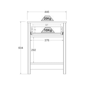 Gaveta que suporta até 10 kg cada.