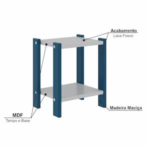 • Material de Qualidade: Pés em madeira maciça de pinus para garantir firmeza e durabilidade, combinados com um tampo e base em MDF, proporcionando um acabamento sofisticado e resistente.