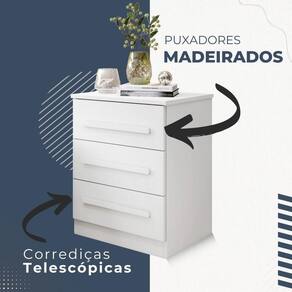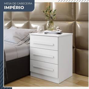 A Mesa de cabeceira Império com design clean trás charme e elegância, possui 3 gavetas com corrediças telescópica, deixando tudo muito bem organizado. Ótimo custo benefício.