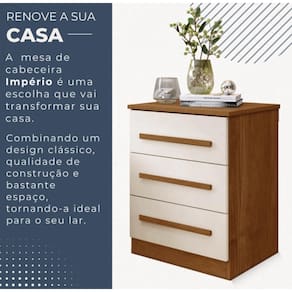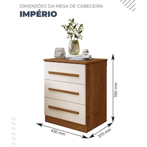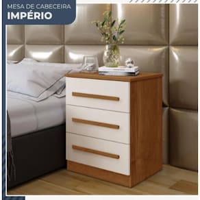 A mesa de cabeceira Império com design clean trás charme e elegância, possui 3 gavetas com corrediças telescópicas, deixando tudo bem organizado. Ótimo custo benefício.