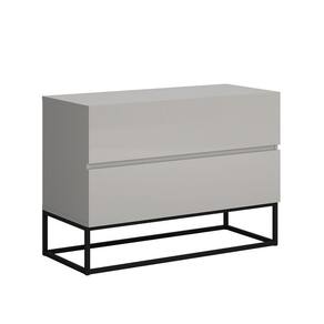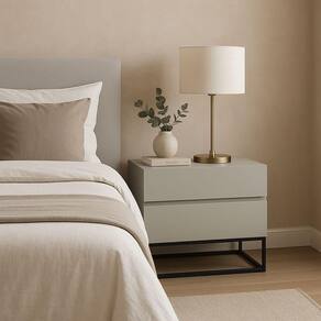 2 gavetas espaçosas (suportam até 9 kg cada) com corrediças telescópicas e puxadores discretos em cava.