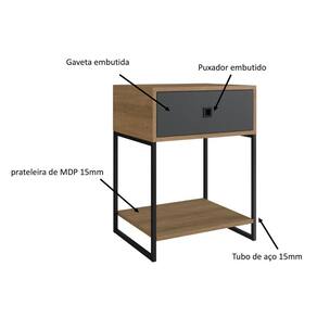 A mesa de cabeceira industrial P1026 da Placa & Ponto possui pés metálicos e a gaveta, tampo e prateleira são em MDP. É um produto indispensável em seu quarto! Você pode usá-lo como apoio de objetos ou guardar seus pertences pessoais. Acabamento da Gaveta: Finish Foil Acabamento da Prateleira: Finish Foil Acabamento dos Pés: Pintura Ambiente Principal: Quarto Complexidade da Montagem: Baixa: pode ser montado por uma pessoa sozinha Cor: Preto/Mel/Grafite Cor do Produto: Preto/Mel/Grafite Cor Flex: Não Cor Interna: Mel Escala de Brilho: Fosco Escala de Brilho da Gaveta: Fosco Escala de Brilho da Prateleira: Fosco Gaveta com Chave: Não Itens Inclusos: 1 Mesa de Cabeceira, 1 Kit Ferragens, 1 Manual de Montagem Linha ou Coleção: Placa e Ponto Manual de Montagem e Instalação: https://product-hub-prd.madeiramadeira.com.br/866040/documents/f2ca92ce-6eb8-4369-82be-67dfe7699547778982701019465p1026manual.pdf Material da Gaveta: MDP Material da Prateleira: MDP Material do Puxador da Gaveta: Plástico Material dos Pés: Metal Material Principal: MDP Montagem Flex: Não Necessita Montagem: Sim Origem do Produto: Nacional Pés Reguláveis: Não Peso: 11 Peso Máximo por Gaveta: 5 Peso Máximo por Prateleira: 5 Pet Friendly: Não Possui Espelho: Não Possui Possui Nichos: Não Possui Pés: Não Possui Portas: Não Possui Prateleiras: 01 Possui Vidro: Não Recomendações de Uso, Manutenção e Limpeza: Para a Limpeza do Móvel Utilizar Uma Flanela Seca. Sapatas Niveladoras: Não Sistema de Montagem: Parafusos e Cavilhas Suporta Até (kg): 15 Tipo de Corrediça da Gaveta: Metálica Simples Tipo de Puxador da Gaveta: Embutido Ean: 7909903392454