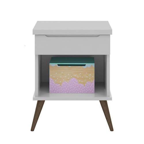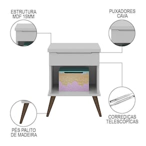 Com a Mesa de Cabeceira Infantil Mel Cinza, da Mpozenato, você tem a de estar adquirindo um produto de qualidade, pois é fabricada 100% em MDF de 15mm, ou seja, muito resistente e duradoura. Além da sua funcionalidade, já que é composta por 1 gaveta e 1 nicho que deixam tudo organizado e no lugar, ainda complementa a decoração do quarto, pois os pés palito estilo retrô são um charme a parte e criam um ar vintage ao passo que o design com linhas retas e puxadores modelo cava agregam modernidade.