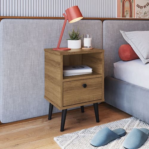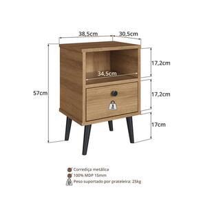 A Mesa de Cabeceira da Plasmobile, é a peça ideal para complementar a decoração do seu quarto, combina um estilo moderno e retrô, possui uma gaveta e um nicho, tem o espaço ideal para organizar as suas coisas. Acabamento da Gaveta: Finish Foil Acabamento da Prateleira: Finish Foil Acabamento dos Pés: Liso Altura dos Pés: 17 cm Ambiente Principal: Quarto Infantil codigo_ean: 7900288246684 Complexidade da Montagem: Média: pode ser montado por mais de uma pessoa e/ou necessite de maior conhecimento para montagem Cor: Mel Cor do Produto: Mel Cor Flex: Não Cor Interna: Mel Escala de Brilho: Fosco Escala de Brilho da Gaveta: Fosco Escala de Brilho da Prateleira: Fosco Gaveta com Chave: Não Itens Inclusos: 1 Mesa de Cabeceira, Kit Ferragem e Manual de Montagem Linha ou Coleção: Quarto Manual de Montagem e Instalação: https://product-hub-prd.madeiramadeira.com.br/822437558/documents/48dfc4a7-11fa-4173-a4ef-7be2bf4b53193251300522517592604870409.pdf Marca: Plasmóbile Material da Gaveta: MDP Material da Prateleira: MDP Material do Puxador da Gaveta: ABS Material dos Pés: Plástico Material Principal: MDP modular: Não Montagem Flex: Não Necessita Montagem: Sim Origem do Produto: Nacional Pés Reguláveis: Não Peso: 7,8 kg Peso Máximo por Gaveta: 4 kg Peso Máximo por Prateleira: 8 kg Pet Friendly: Não Possui Espelho: Não Possui Nichos: 01 Possui Pés: 04 Possui Portas: Não Possui Prateleiras: 01 Possui Vidro: Não Quantidade de Nichos: 01 Recomendações de Uso, Manutenção e Limpeza: Para a limpeza do móvel utilizar pano levemente umedecido Sapatas Niveladoras: Não Sistema de Montagem: Parafuso e Cavilhas Suporta Até (kg): 15 kg Tipo de Corrediça da Gaveta: Metálica Simples Tipo de Puxador da Gaveta: Externo Marca: Não Informado